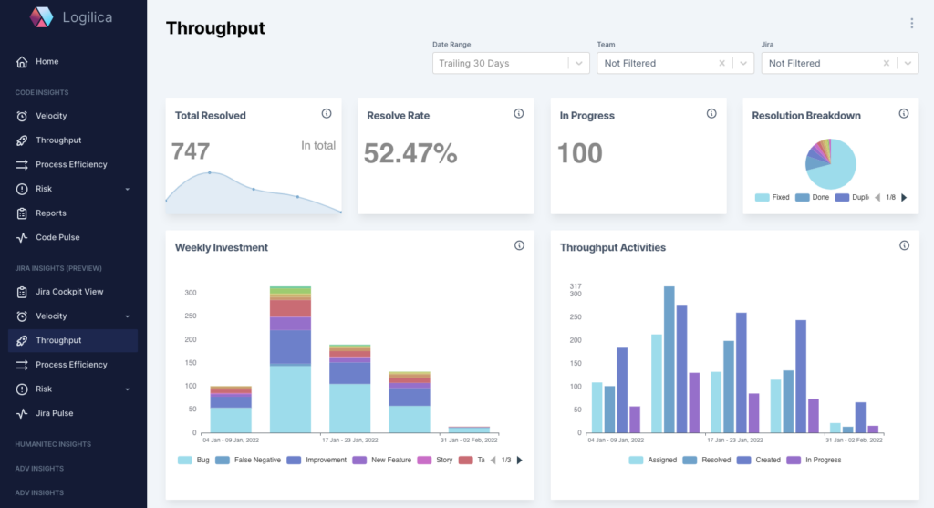 Logilica helps engineering leaders to automate capturing flow metrics. Speak to one of our friendly team members, who can walk you through the Logilica platform to see if we are a good match for you. Our SaaS platform is free to sign up and you can get started in as quickly as 15min to see your own engineering flow metrics!